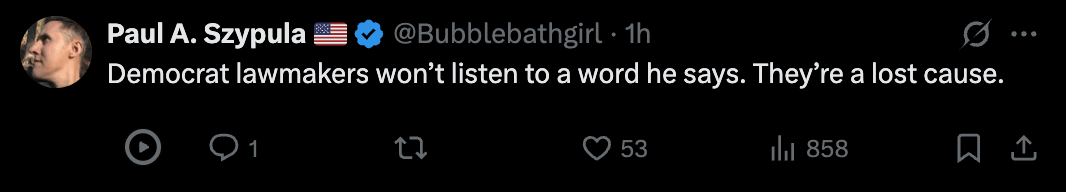 Paul A. Szypula reacted with pessimism: “Democrat lawmakers won’t listen to a word he says. They’re a lost cause.”